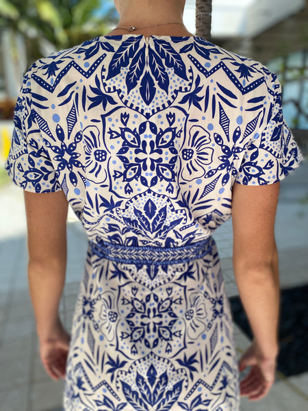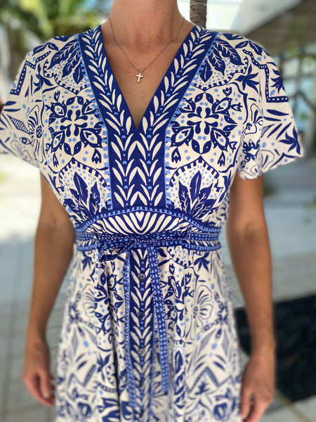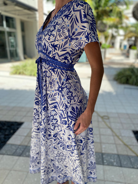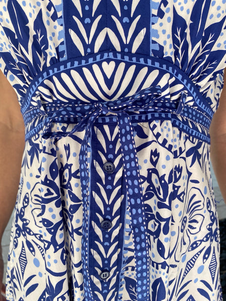 Hale Bob S/S V Neck Dress Blue