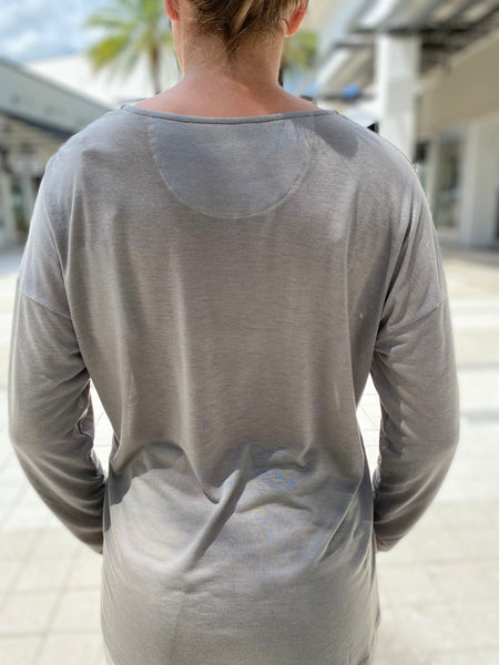 This garment is made of a milk protein fabric. it is lightweight, soft and smooth like silk. This transpiring fabric makes the garment as comfortable as a second skin.