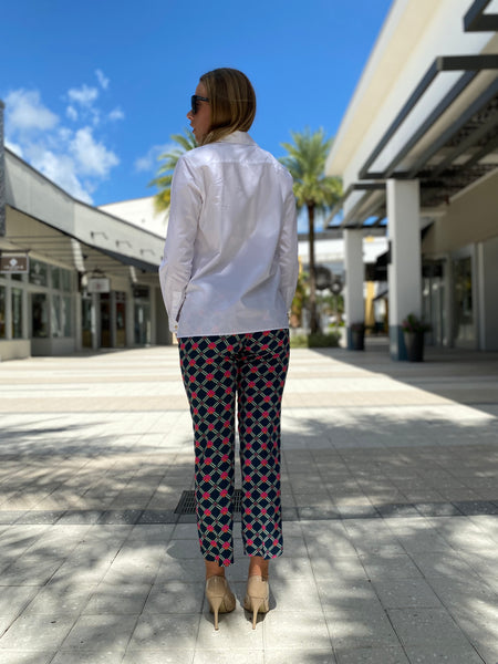 This pristine white, elegant collar shirt, crafted with 100% cotton fabric, is embellished with gleaming jewel buttons for a luxuriously sophisticated look.